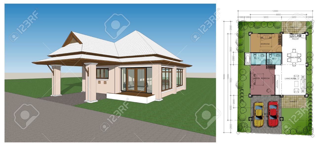 3d Rendering Plan Two Bedrooms Tropical Modern House Stock Photo Picture And Royalty Free Image Image 19805870